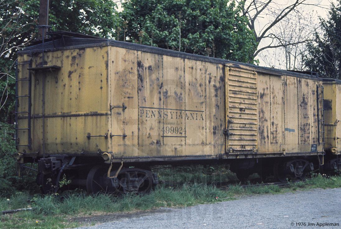 Ex-PRR 499924 MOW service Tool & Supply Car stored on former PRR track near Lyco Tower. Lyco Tower was located in the old REA building next to the old passenger station in the area of Park Place.