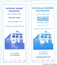 During Septa's Reading Division transition to Conrail-contracted operations in April, 1976, the "Pottsville to Philadelphia" May1, 1976 timetable shows "Reading Lines" replaced with the new "ConRail" logo, with lines above and below.