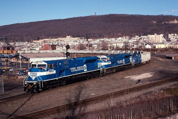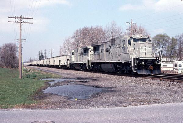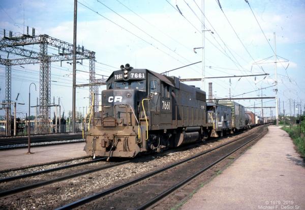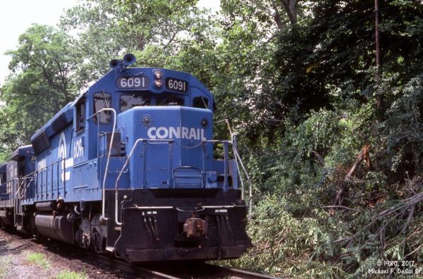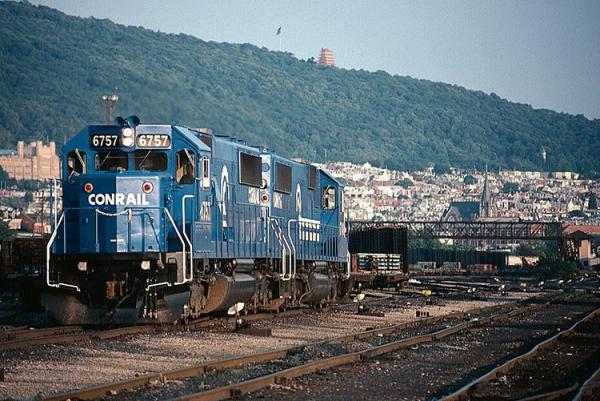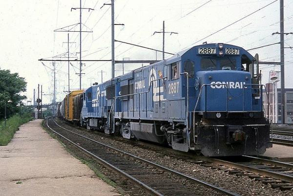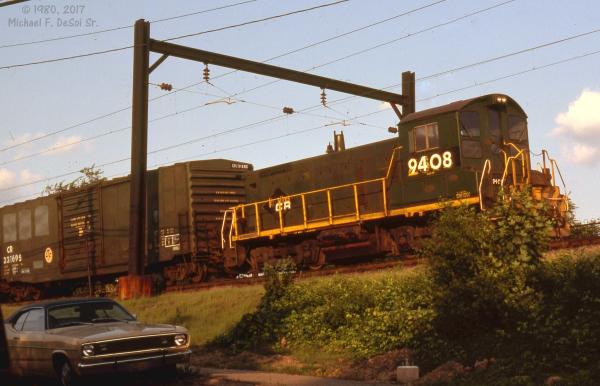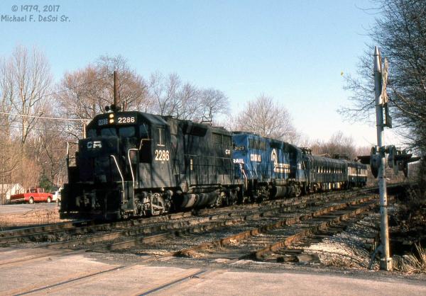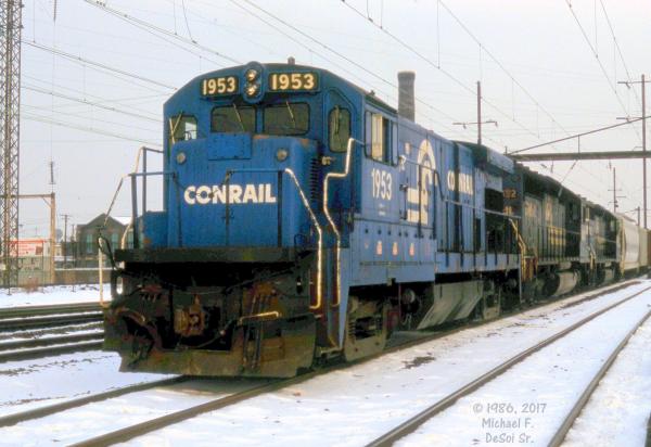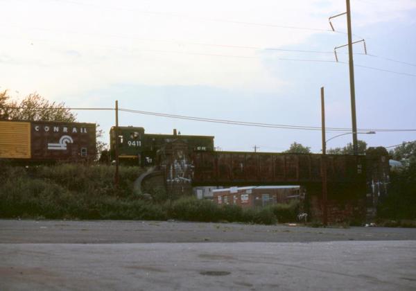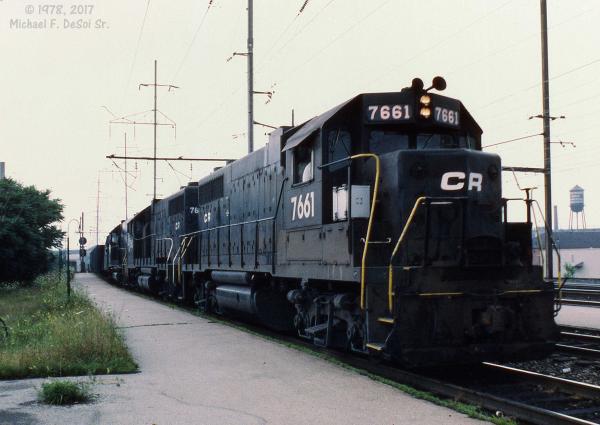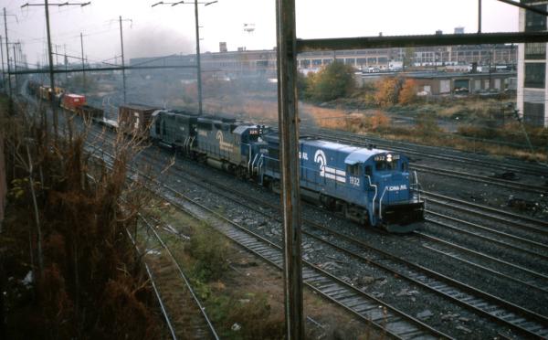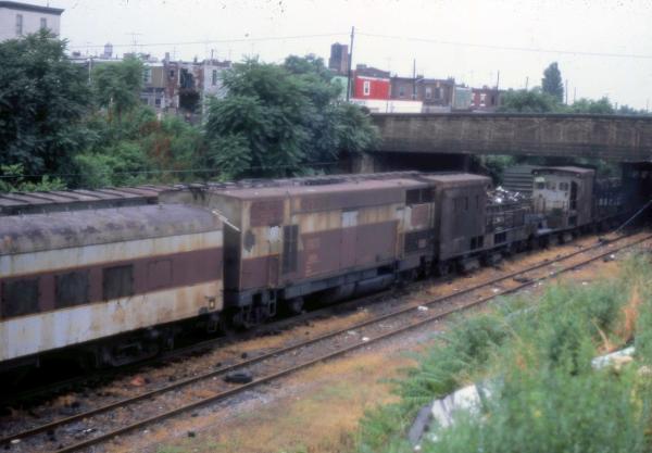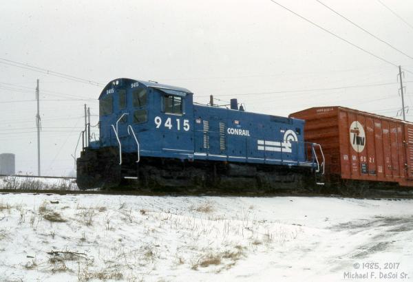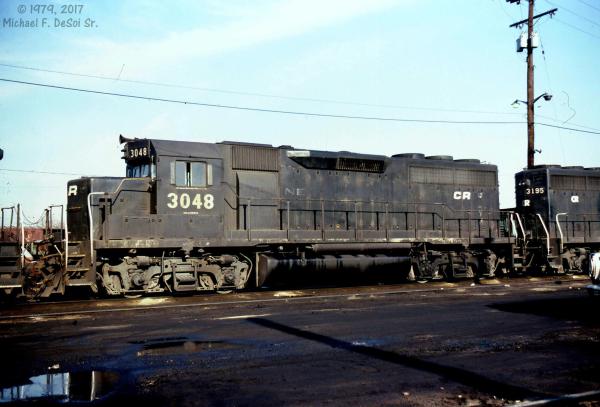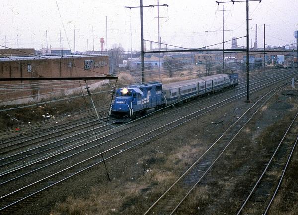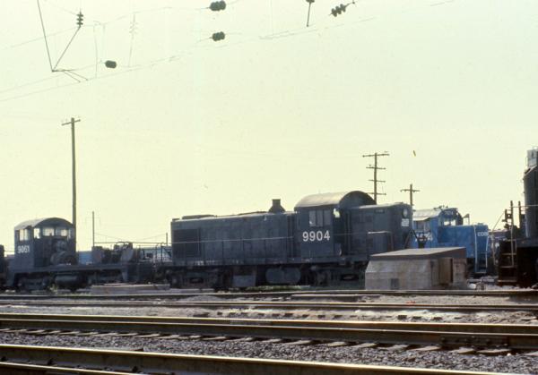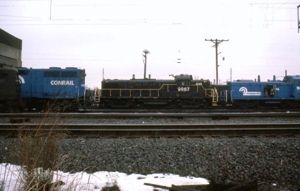 CR 9592, 9591 and 9590 rest between assignments at Greenwich yard in Philadelphia, PA. March 9, 1985