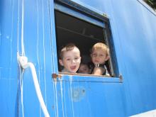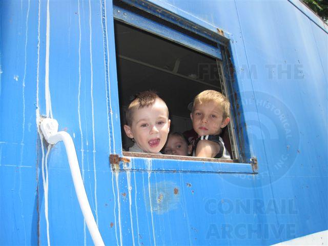 Previous Next Happy riders aboard the 21165! The CRHS member at left is Lucas, son of Nate Novack. Photo By Brian Saul Year 2010 Original Date 6/11/10 Collection CRHS Conrail Photo Archive Contributions