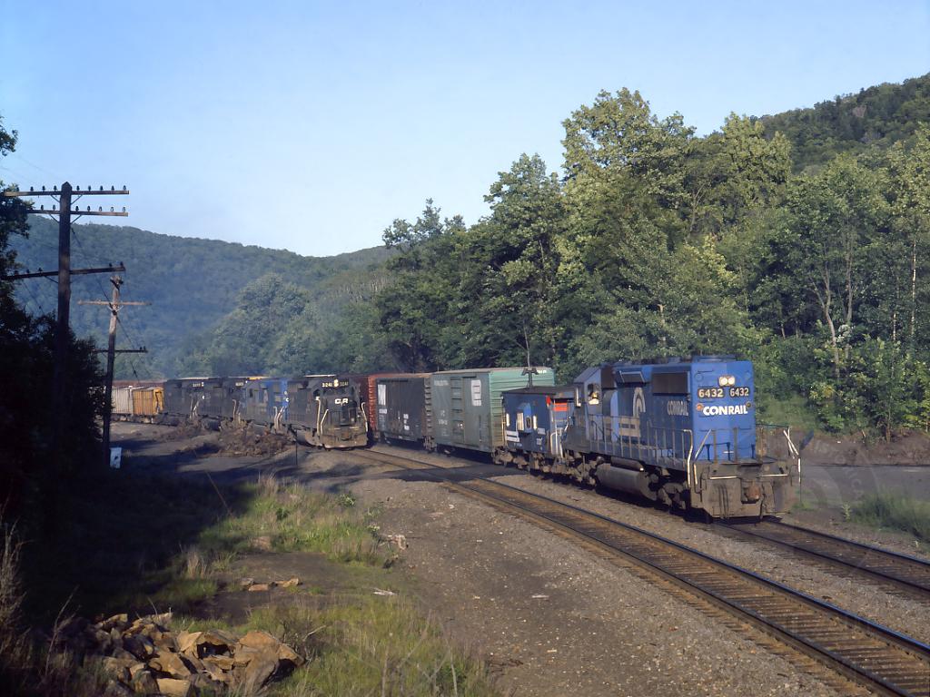 Before SENH's rear end is out of the picture, westbound ballast train BTO731 enters the scene, crawling upgrade on track 1 at 19:03.