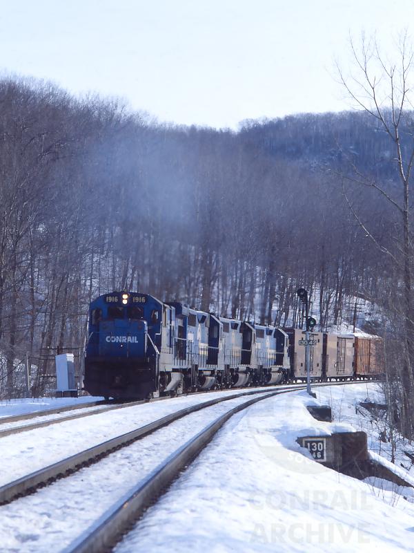 B23-7 1916 leads SPSE into Bancroft at 09:04, 15 minutes behind preceding TV-9X.