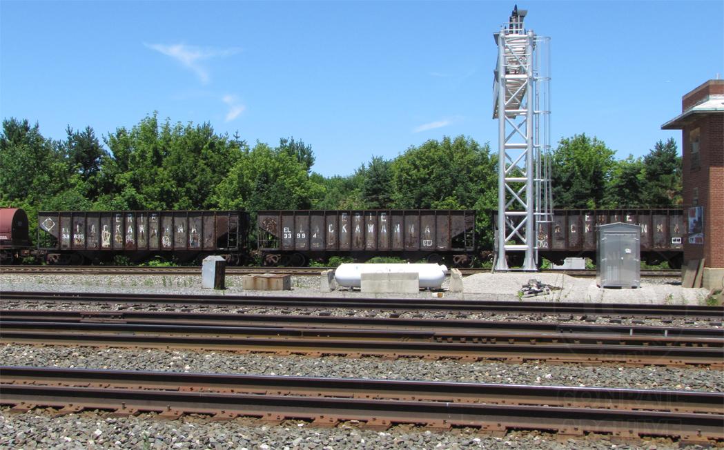 Another fantastic catch! A string of 3 untouched Erie Lackawanna 100 ton 3-bay coal hoppers heads eastbound on NS train 18A. This day, 18A also had numerous CR gondolas as well as NS 487459, an all gray 86 foot auto parts car. Time: 12:18pm