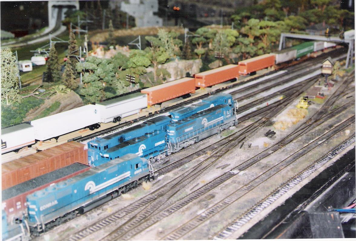 Previous Next Here's some Conrail powered trains waiting their turn to make a few rounds on the Altoona Model Railroaders layout Photo By Chris Howe Year 2008 Original Date 10/26/08 Collection CRHS Conrail Photo Archive Contributions