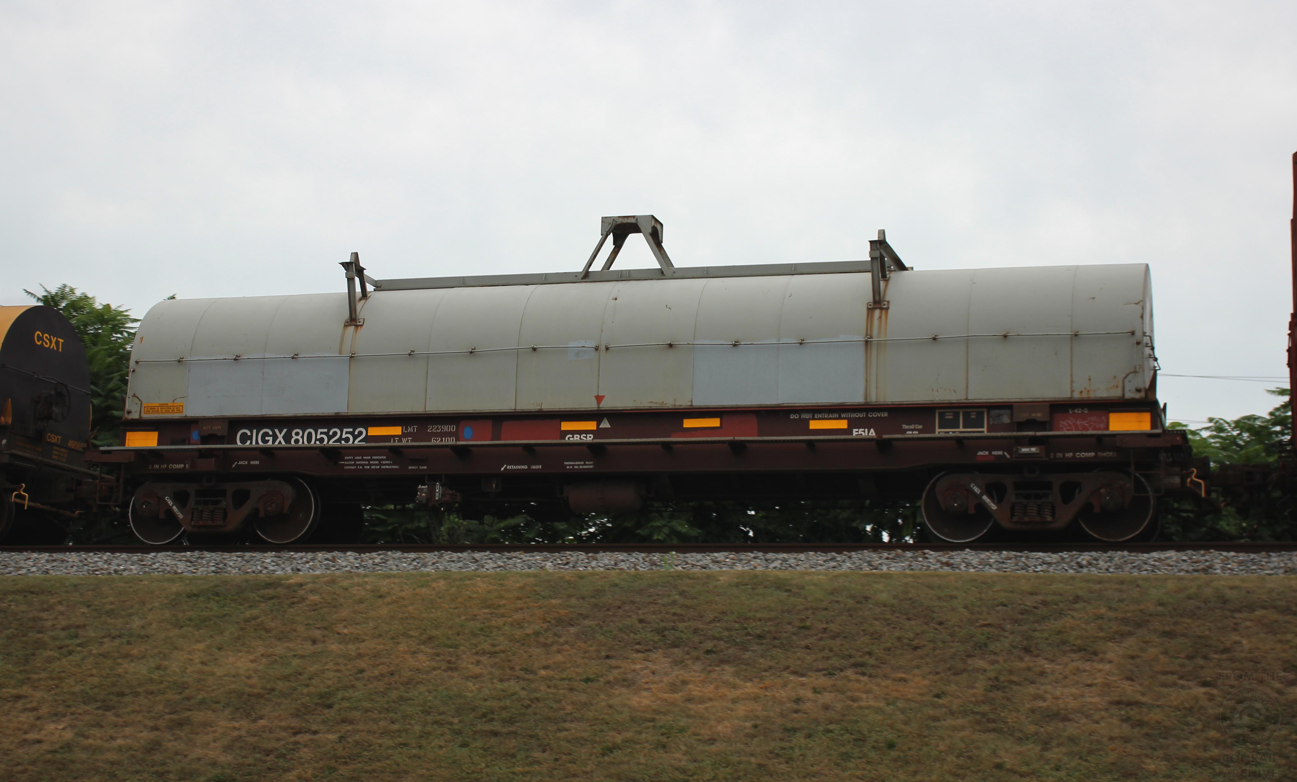 CIGX 805252 is seen in the consist of CSX Q410-05 at Newark, DE on 8/7/21. Car is ex CR 623988 and was built 10-97 by Thrall as part of Job 424.