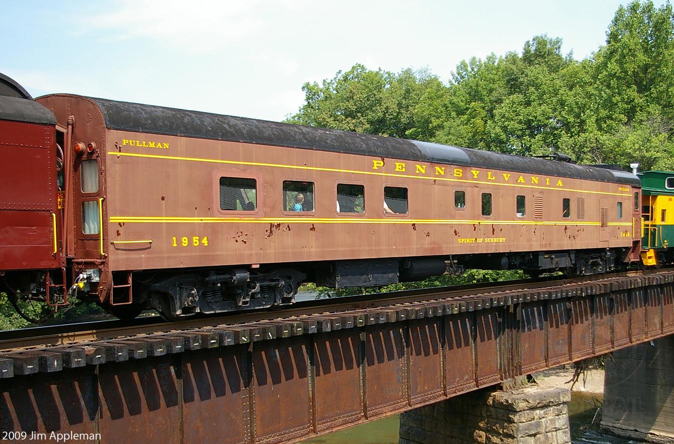 Seen here PRR #1954 Spirit of Sunbury crew/generator car is in service on the NSHR for a Danville, PA Iron Heritage Festival excursion to Bloomsburg and return.