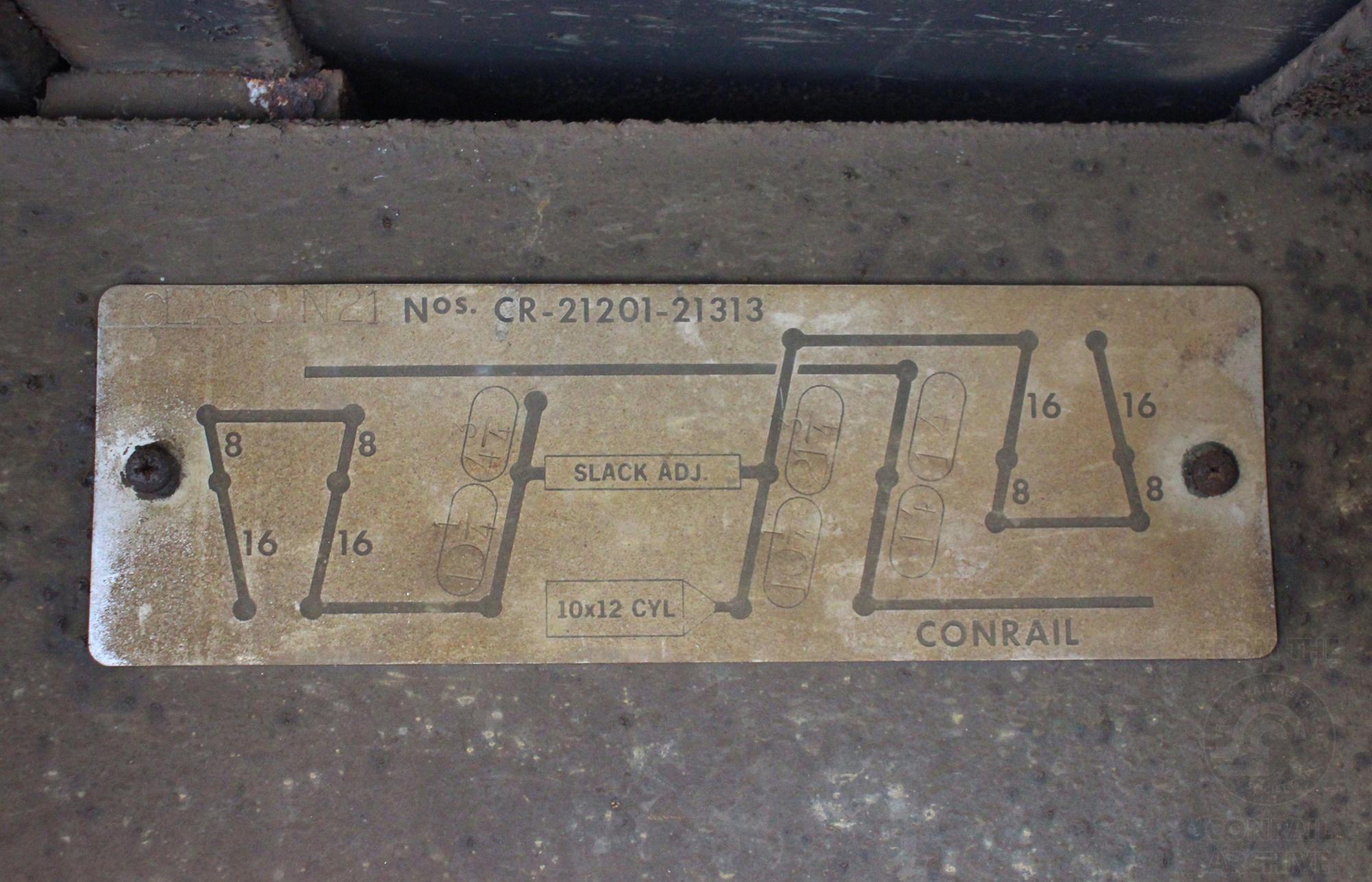 A close-up view of the brake diagram plate on CR 21305. Bridgeport, NJ on 7/12/22.