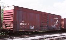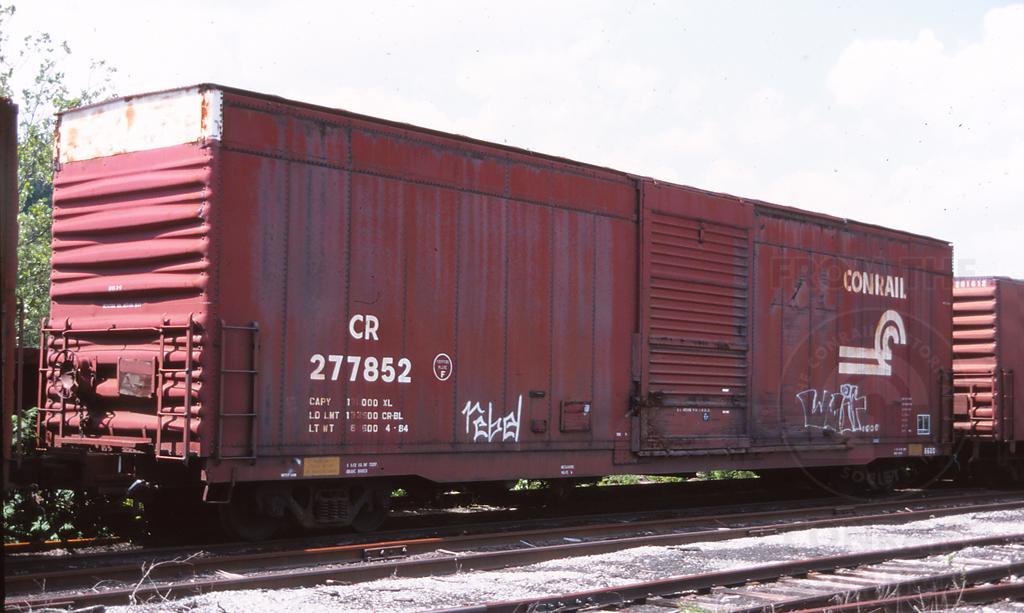 CR 277852 is seen in storage at Hollidaysburg PA on 6/19/02. Car is ex CR 274800/PRR 129975 and was built 10-67. Car was rebuilt and repainted at HCS CR-BL 4-84.