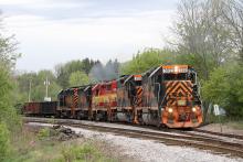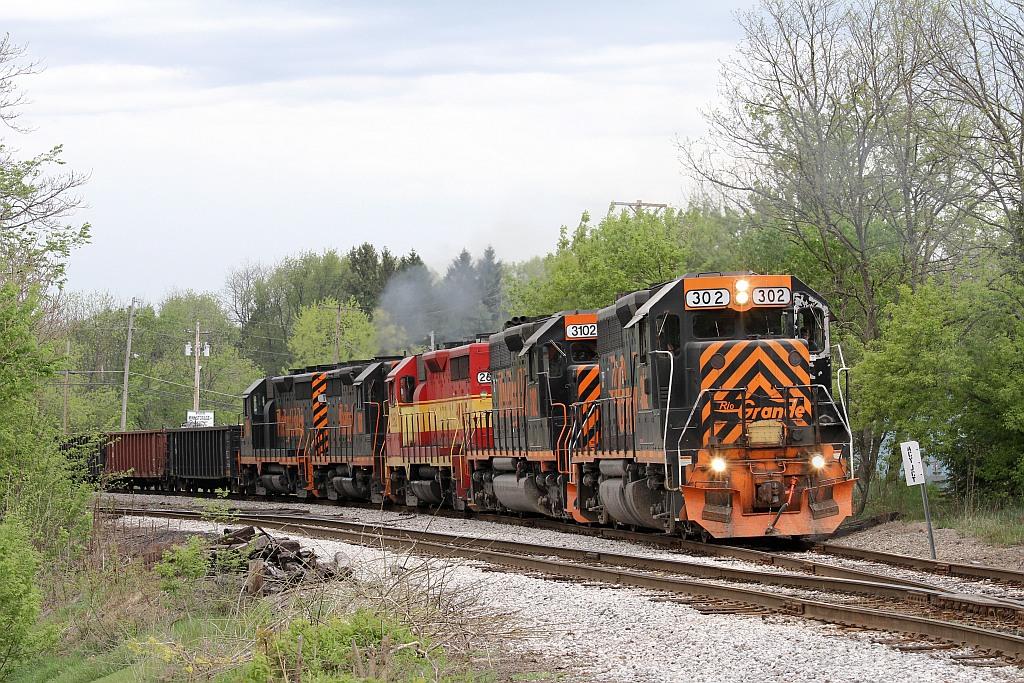 One has to dig deep to find the Conrail roots of this locomotive. It started life as Penn Central GP-40 #3113, and became Conrail 3113 after April 1st 1976. It would serve CR until being sold to the Denver and Rio Grande Western in 1983 as their 3131. The Union Pacific (successor to the DRGW/SP) would sell the unit to the W&LE in December of 2001 and it would run for a short while as WE 3131. The Wheeling would rebuild it to "GP-40-3" standards and renumber it to #302....but retain it's Rio Grande paint scheme. Shown here passing ACY Junction in Mogadore, Ohio as it leads a southbound scrap train from Falls Junction to Canton, Ohio.