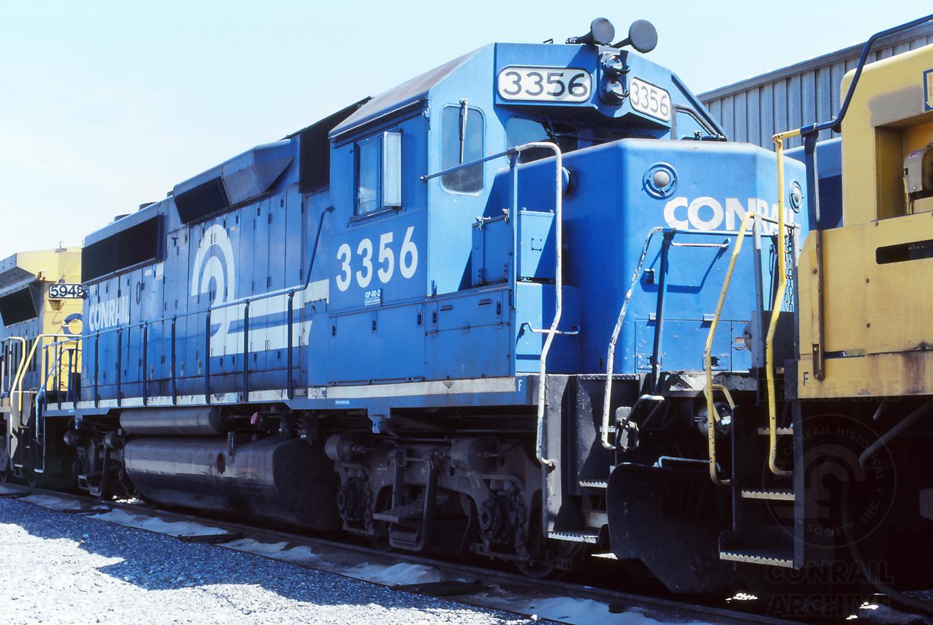 Previous Next CR 3356, soon to be renumbered to CSXT 4431, was at Cumberland, MD on 6/23/99. Photo By Jeff Weaver Location City Cumberland MD Equipment Type EMD GP40-2 Conrail Number 3356 Post Conrail Owner CSX Year 1999 Original Date 6/23/99 Collection CRHS Conrail Photo Archive Contributions