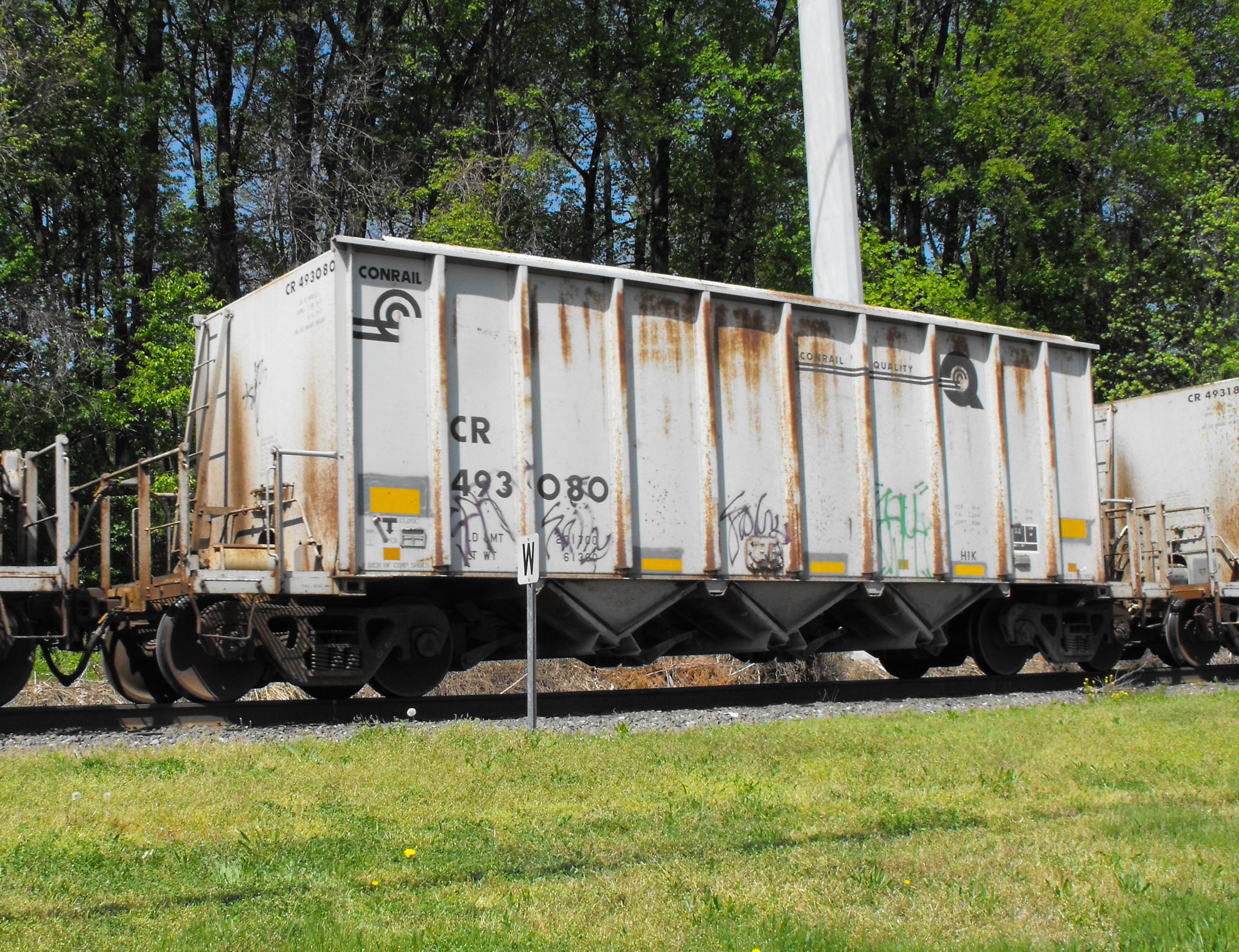 CR 493080 is seen in the consist of NS 12G at Newark, DE on 4/20/10. Car was built 1-92 by Trinity.