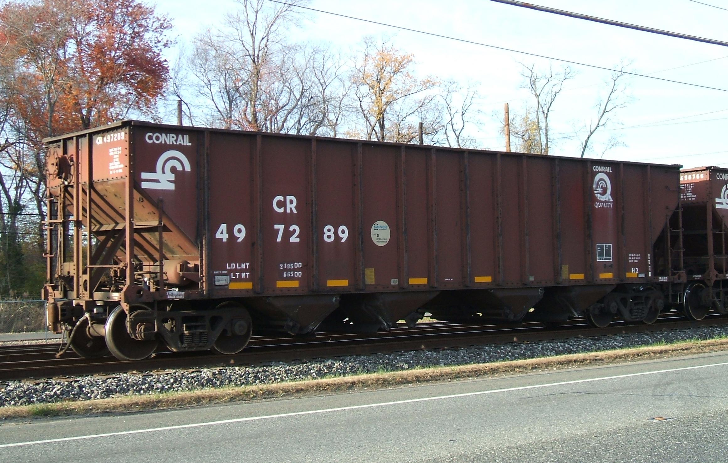 CR 497289 is seenat Deepwater NJ on 11/30/07. Car built 12-94 by HCS. It was rebuilt by FCA atRoanoke, VA into a 3-bay hopper in 9-13 and was renumbered to NS 145540.