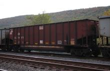 CR 507491 is seen in the consist of NS 591 at Cove, PA on 10/18/25. Car was built 8-97 (painted 8-11-97) by HCS.