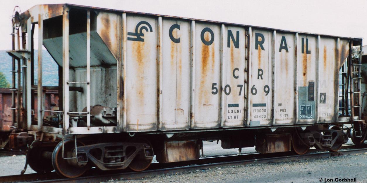 Car is ex PRR 258272 and is seen here in 2000. Car was built Oct 1958 as a covered hopper and rebuilt as CR 50769 in May 1977. Car was painted at the Hollidaysburg, PA car shops in May 1977.