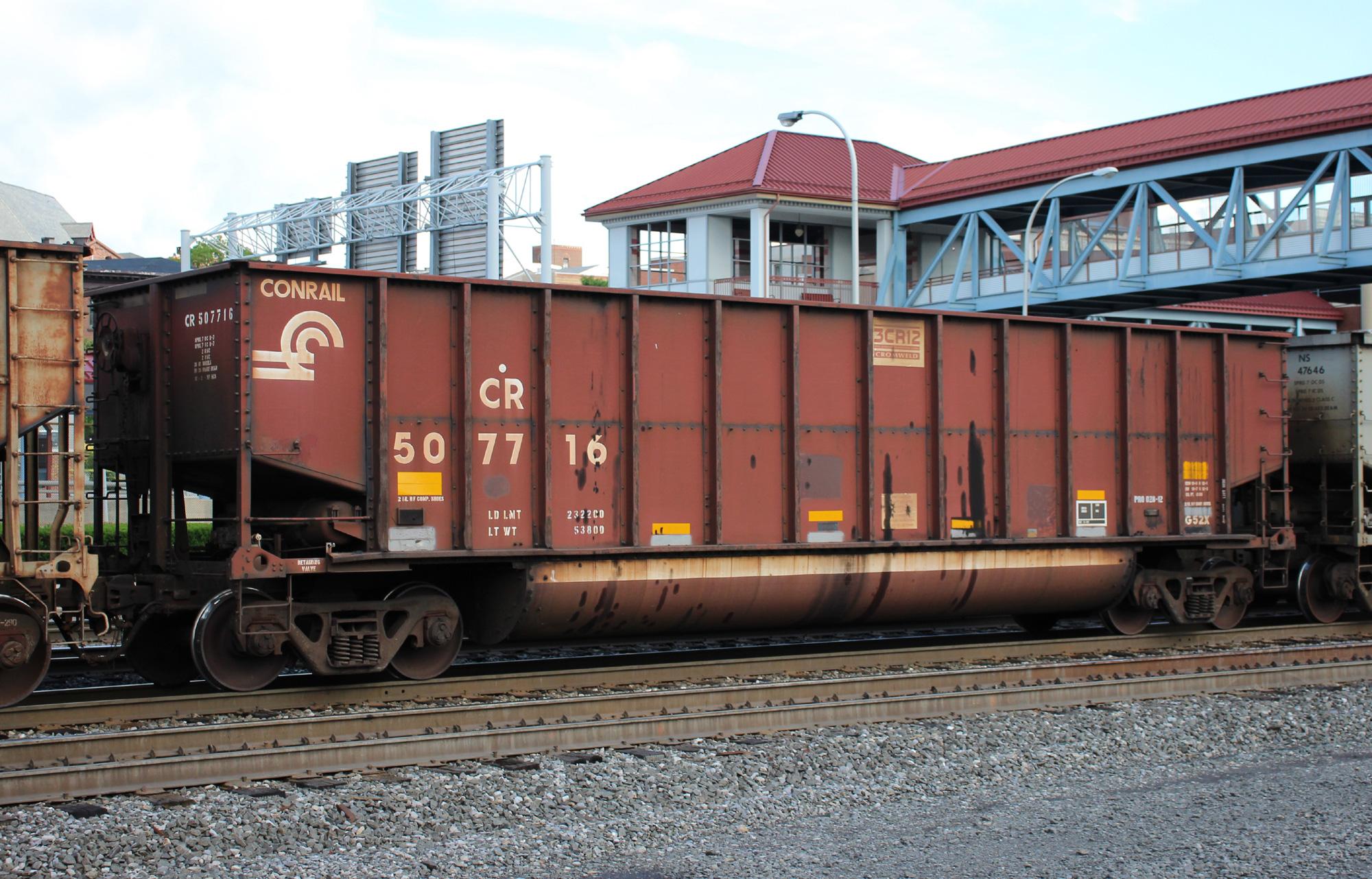 CR 507716 is seen in the consist of NS 593 at Altoona, PA on 6/21/19. Car was built 10-97 (painted 10-3-97) by HCS.