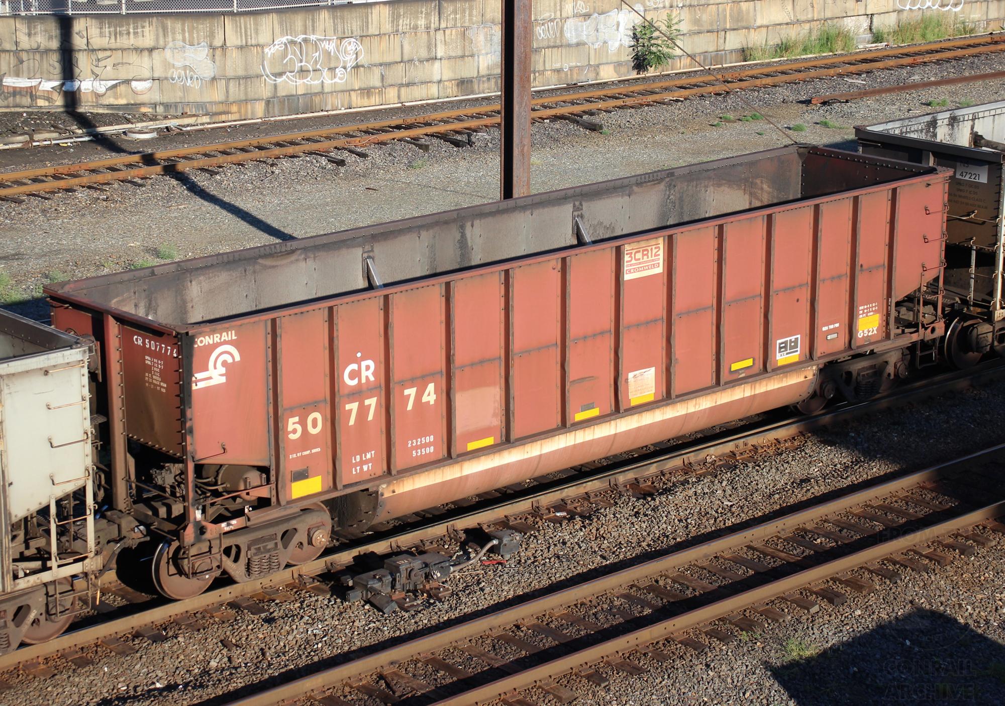 CR 507774 is seen in the consist of NS Y91 at Harrisburg, PA on 7/30/22. Car was built 10-97 (painted 10-21-97) by HCS.