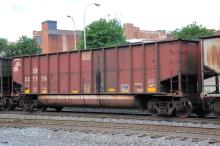 CR 507776 is seen in the consist of NS 593 at Altoona, PA. Car was built 10-97 by HCS.