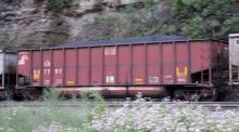 CR 507787 is seen in the consist of NS 596as it rounds Horseshoe Curve in Altoona, PA on 6/24/23. Car was built 10-97(painted 10-22-97) by HCS.