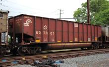 CR 507807 is seen in the consist of NS 591 at Perryville, MD on 5/4/25. Car was built 10-97 (painted 10-28-97) by HCS.