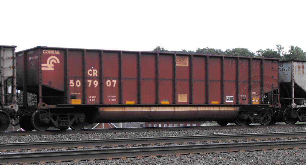 Previous Next CR 507907 is seen in NS 10N at Cresson PA on 6/28/13. Car was built 11-97. Photo By Chris Carangi Equipment Type Class G52X Conrail Number 507907 Post Conrail Owner Norfolk Southern Post Conrail Number NS 507907 Year 2013 Original Date 6/28/13 Collection CRHS Conrail Photo Archive Contributions