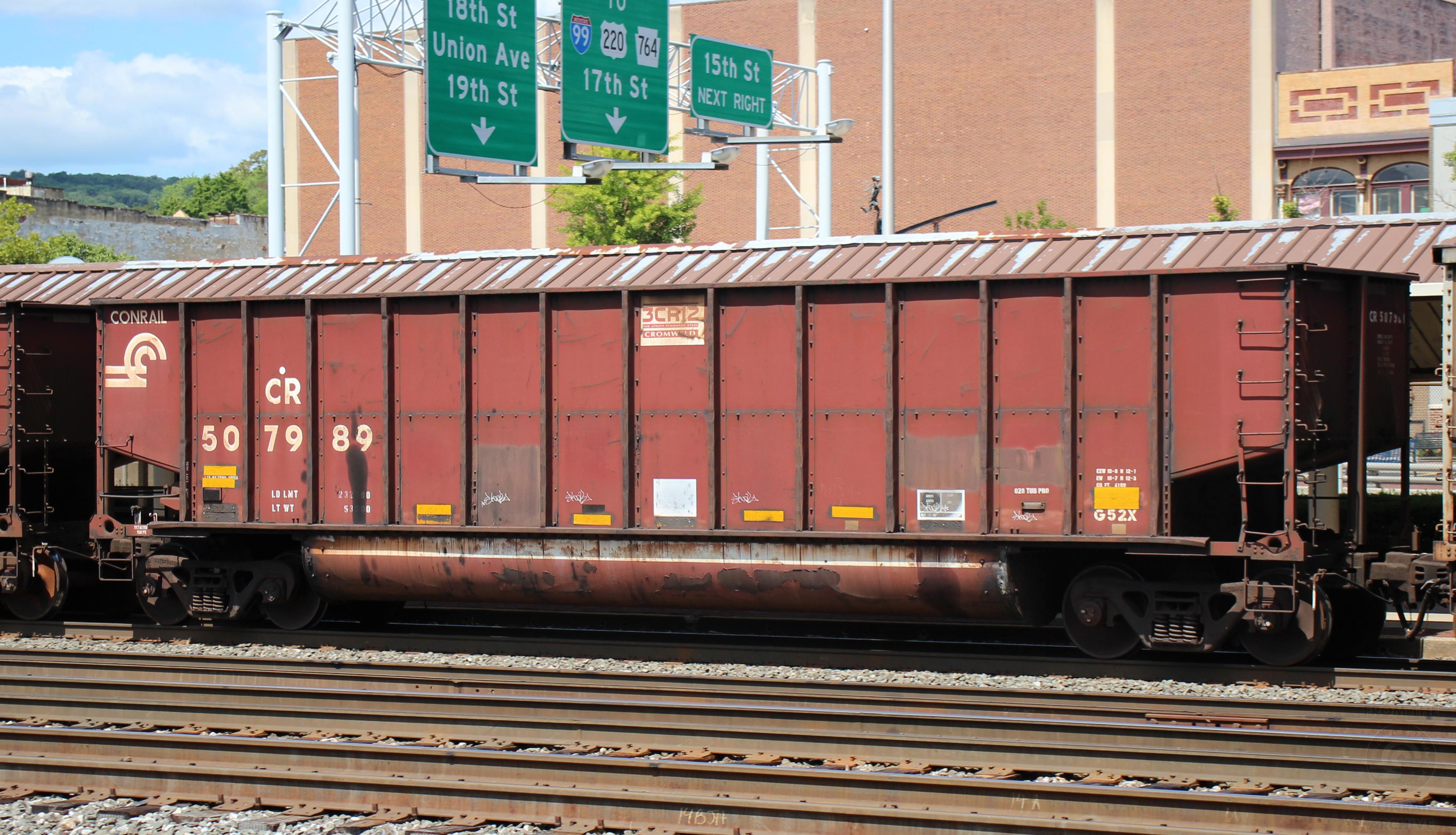 CR 507989 is seen in the consist of NS 595 at Altoona, PA on 8/11/24. Car was built 12-97 (painted 12-12-97) by HCS.