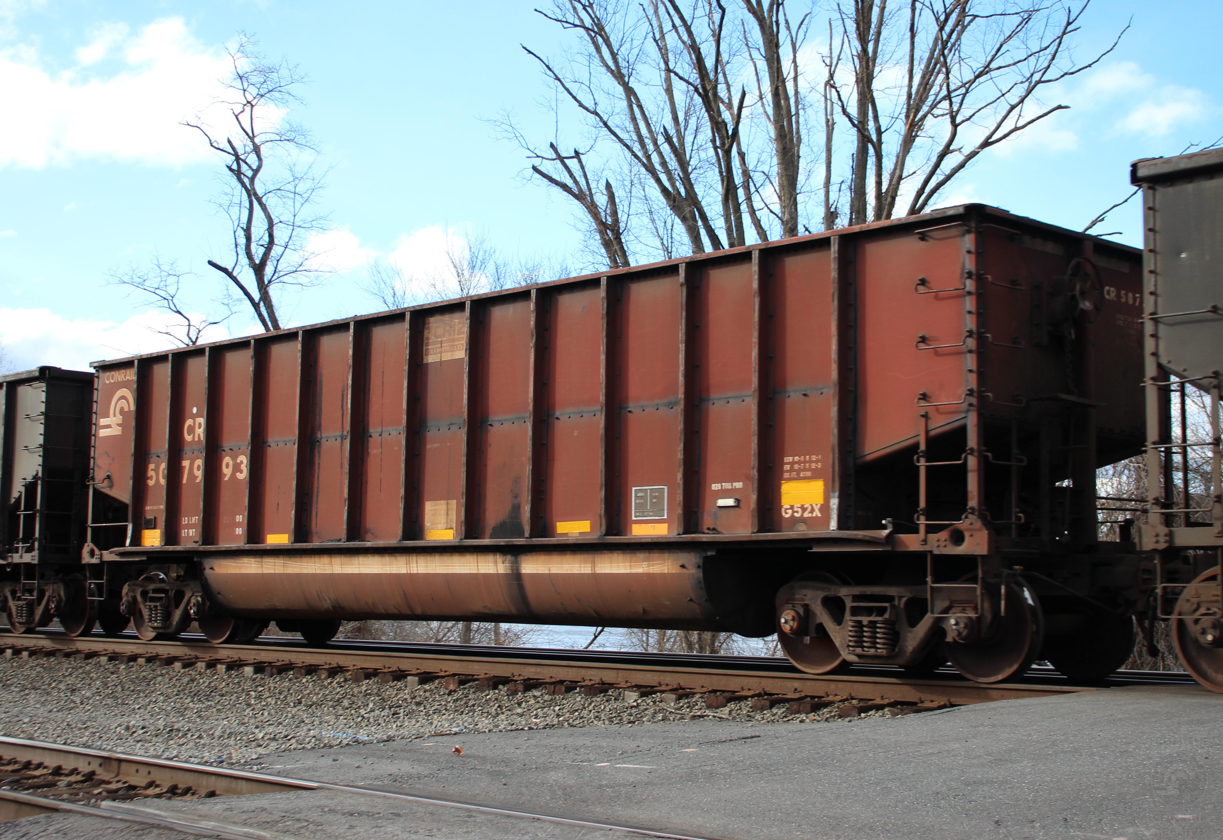 CR 507993 is seen in the consist of NS Y91at Cove, PA on 3/1/25. Car was built 12-97 (painted 12-15-97) by HCS.