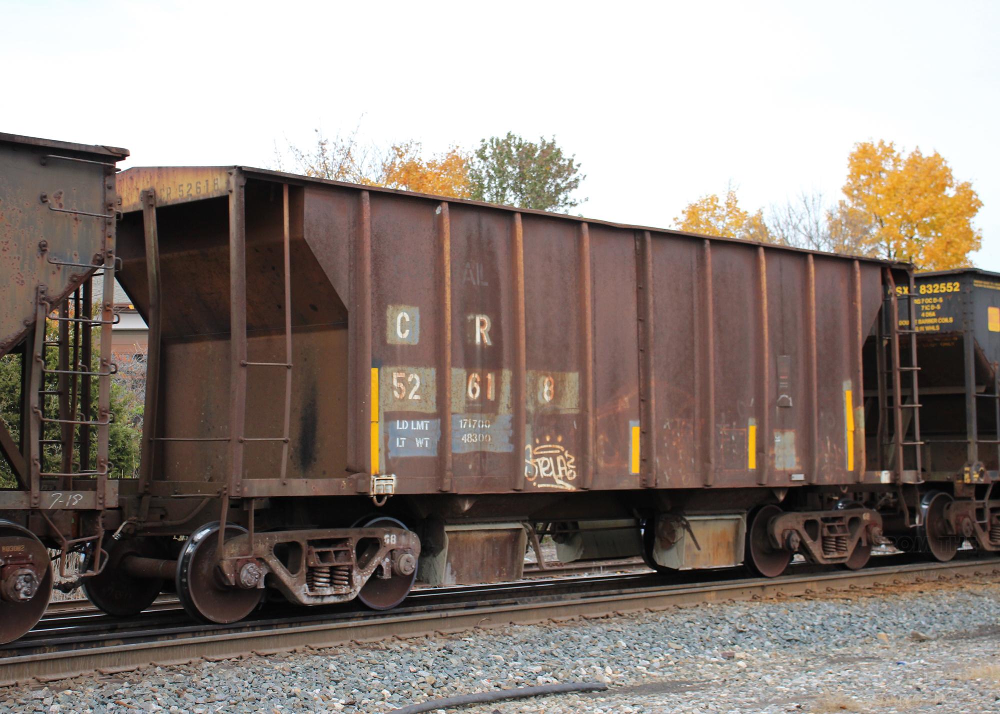 CR 52618is seen in the consist of CSX Q372-13 at Elsmere, DE on 11/14/21. Car is ex PRR 258200 and was built 10-58.