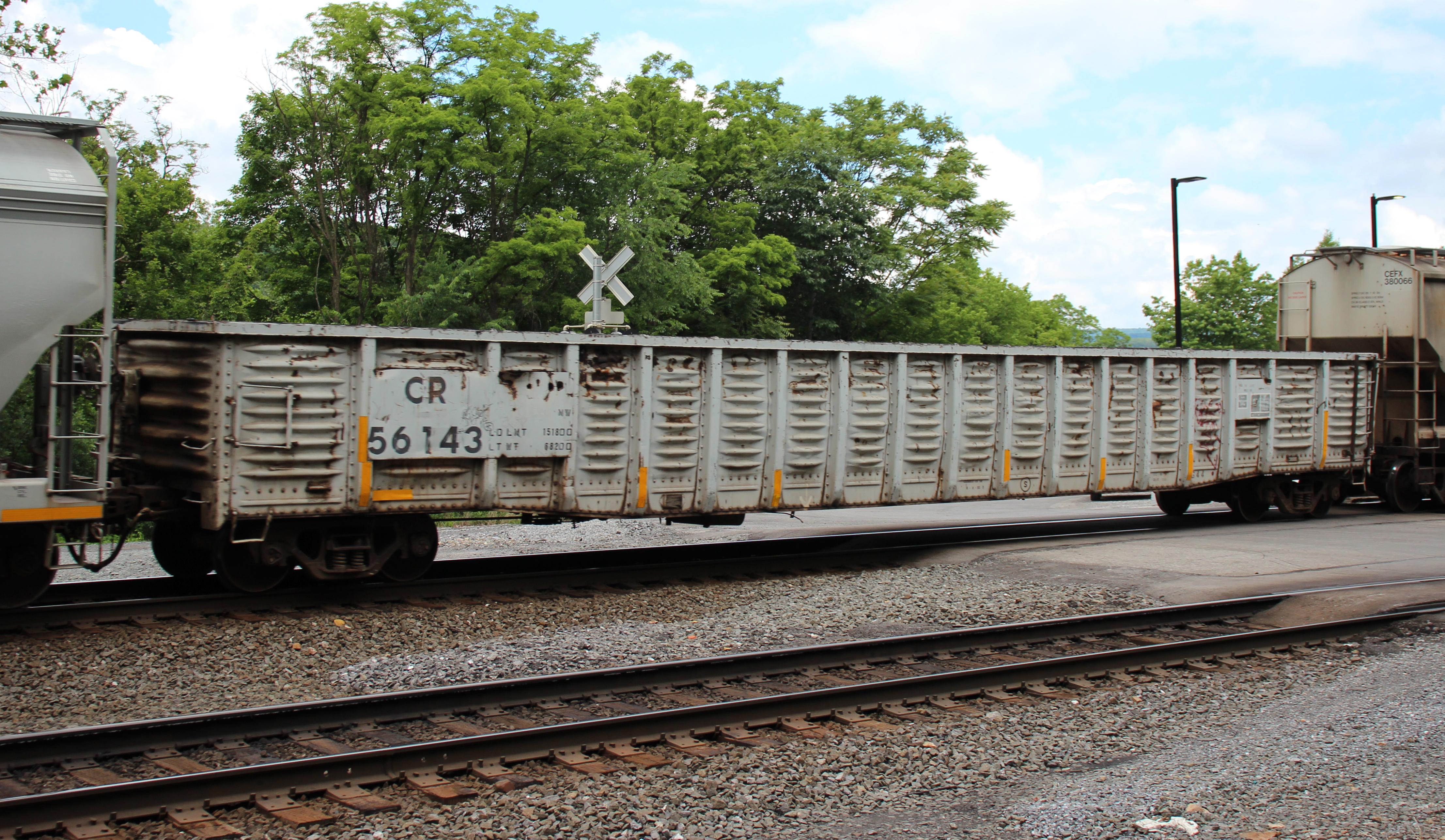 CR 56143 is seen in the consist of NS 12G at Tyrone, PA on 6/25/23. Car is ex PRR 442560, built 7-66, and was painted CR SR 8-8-95.