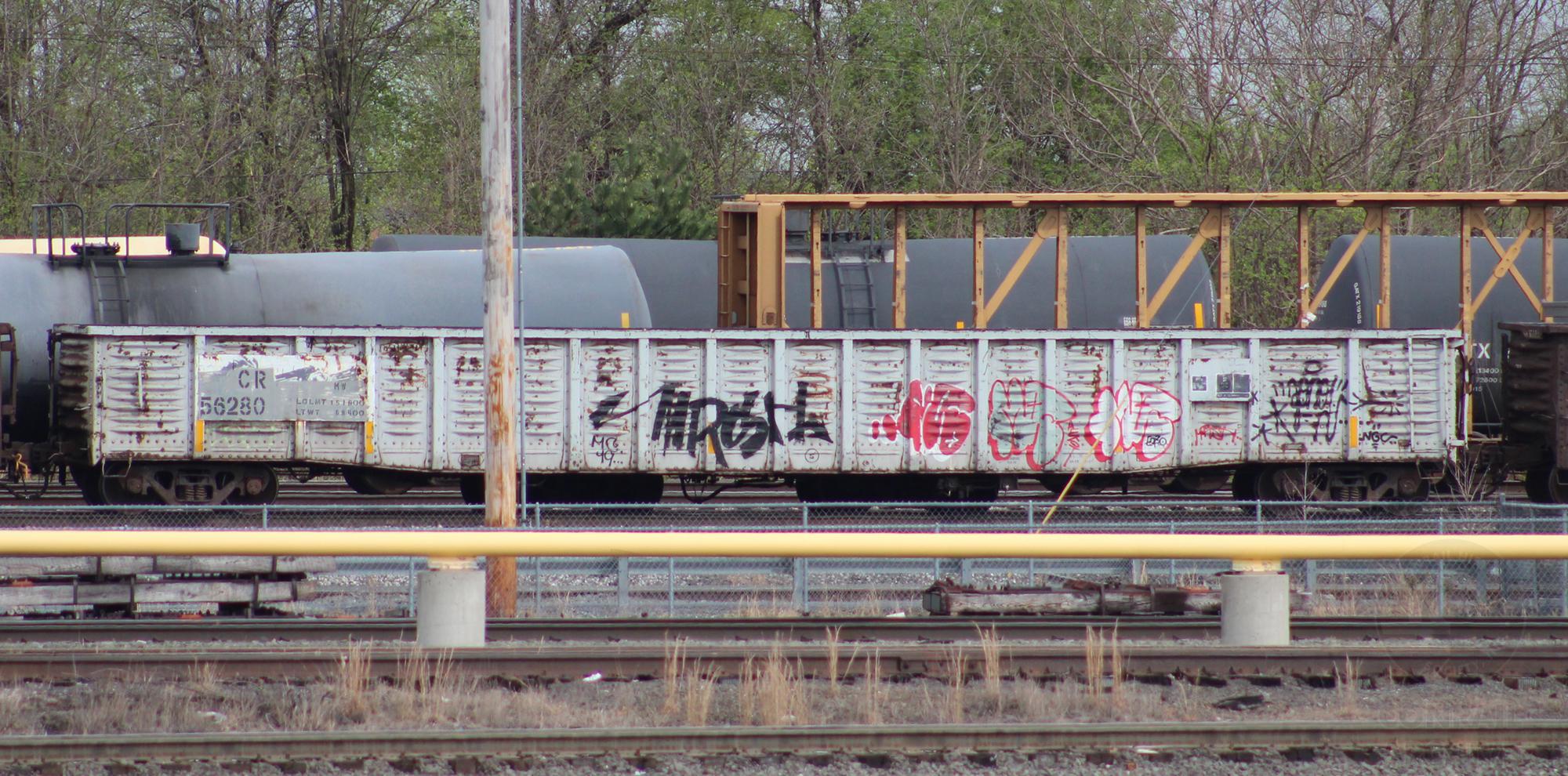 CR 56280 is seenat Enola, PA on 4/15/23. Car is ex PRR 442587, weighted 12-12-95 (possibly painted)and was built 7-66.