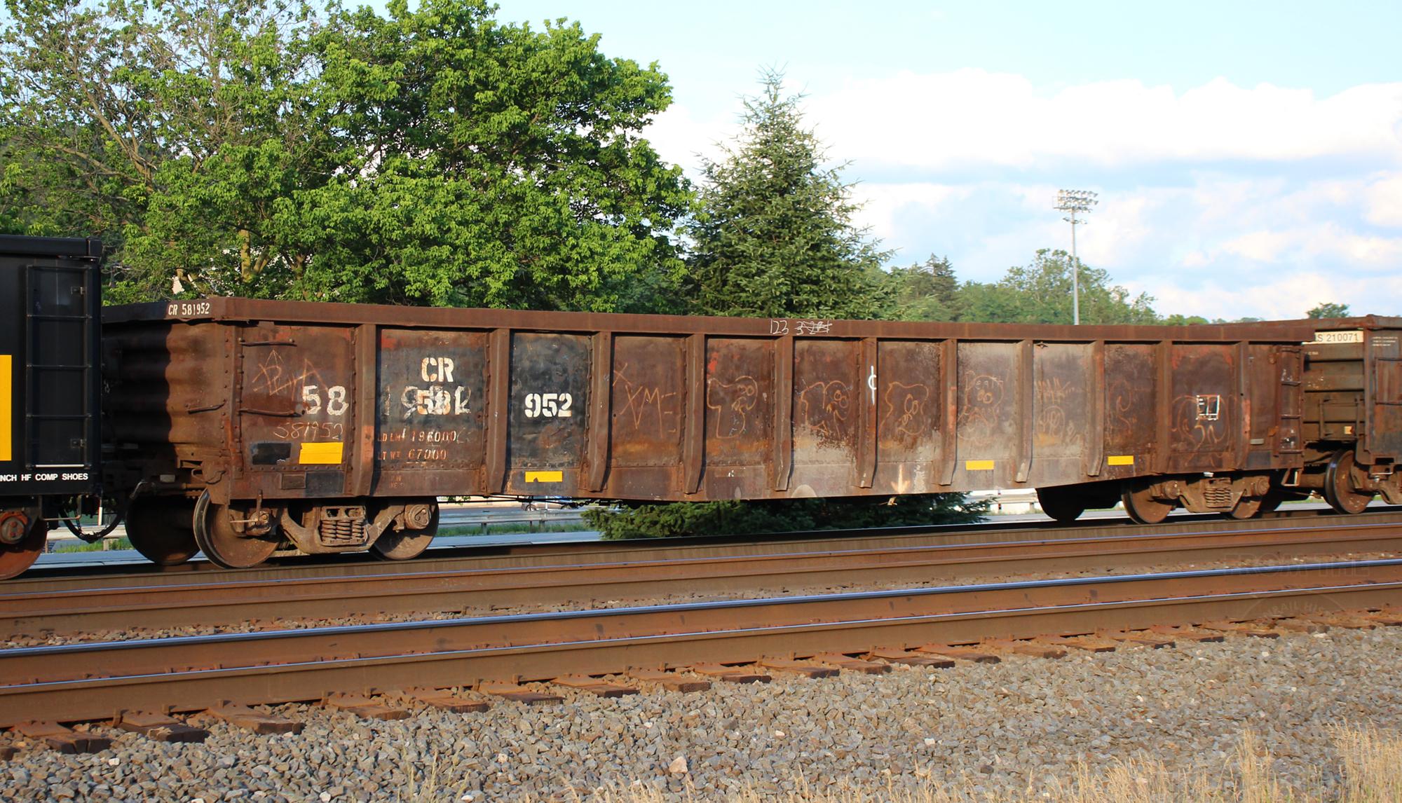 CR 581952is seen in the consist of NS C28 at Leetsdale, PA on 6/24/21.Car was built 5-80 by CR.