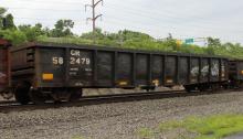 CR 584279 is seen in the consist of EB NS 61N at Wyomissing, PA on 7/19/15. Car was built 11-84. Note car was repainted black by NS, but is still lettered CR.