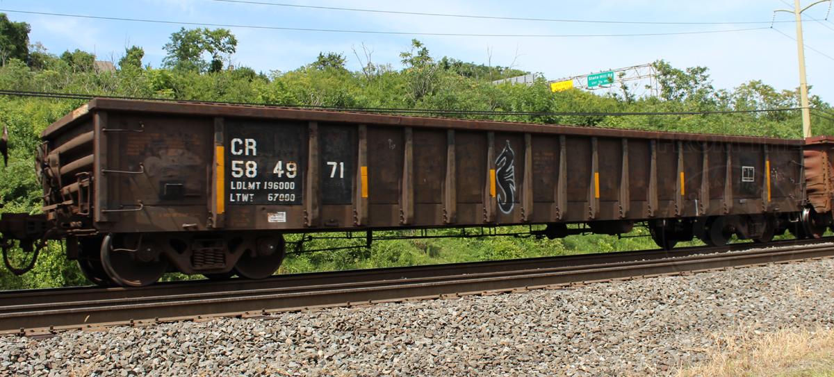 CR 584971 is seen in the consist of EB NS 61Z at Wyomissing, PA. Car is ex SB 6141.