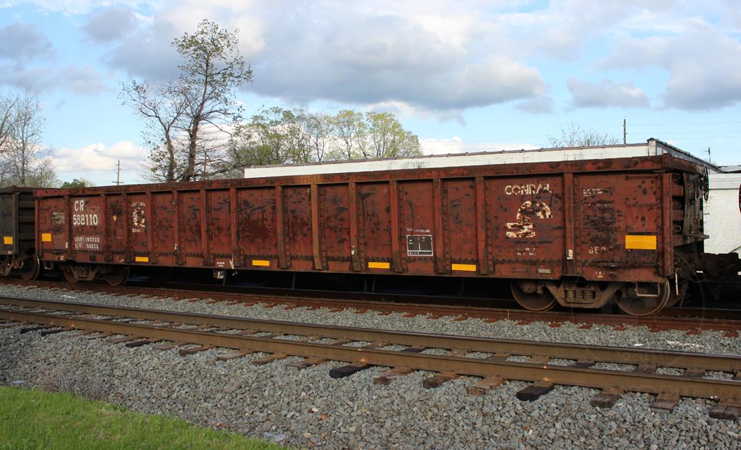 CR 588110 is seen at Westville, NJ on 4/20/15. Car is ex CR 565050/PC 565050 and was built 3-72.