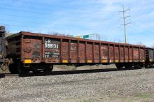 CR 588134 is seen in the consist of EB NS 61N at Wyomissing, PA on 4/16/15. Car is ex CR 565082/PC 565082 and was built 3-72.