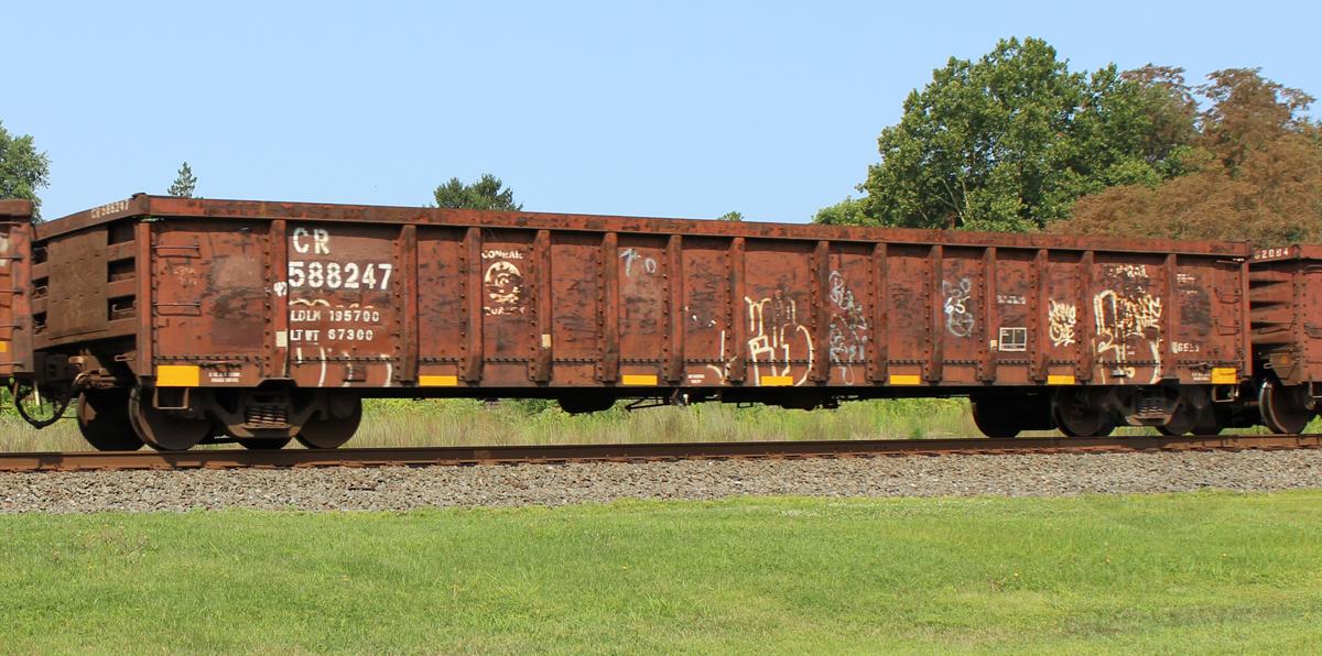 CR 588247 is seen in the consist of EB NS 61Z at Marysville, PA on 8/9/14. Car is ex CR 580974/PC 580974 and was built 2-72.