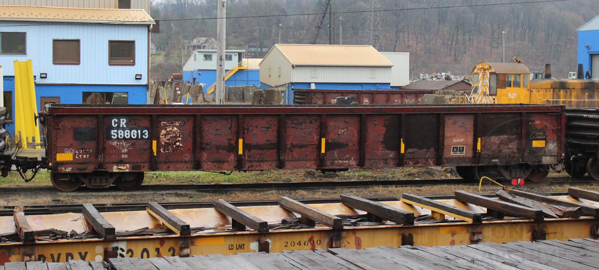 CR 588613 is seen at Coatsville, PA on 12/5/16. Car is ex CR 578947/PC 578947 and was built 3-70 as a PC G43C class gon.