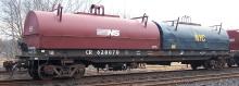 Seen here is a Conrail class G52A coil car that was repainted by Norfolk Southern at the Hollidaysburg, PA freight car shops after the 1999 Conrail split. Note that the car is painted NS black but still retains it's Conrail road number and has Conrail logos on it.