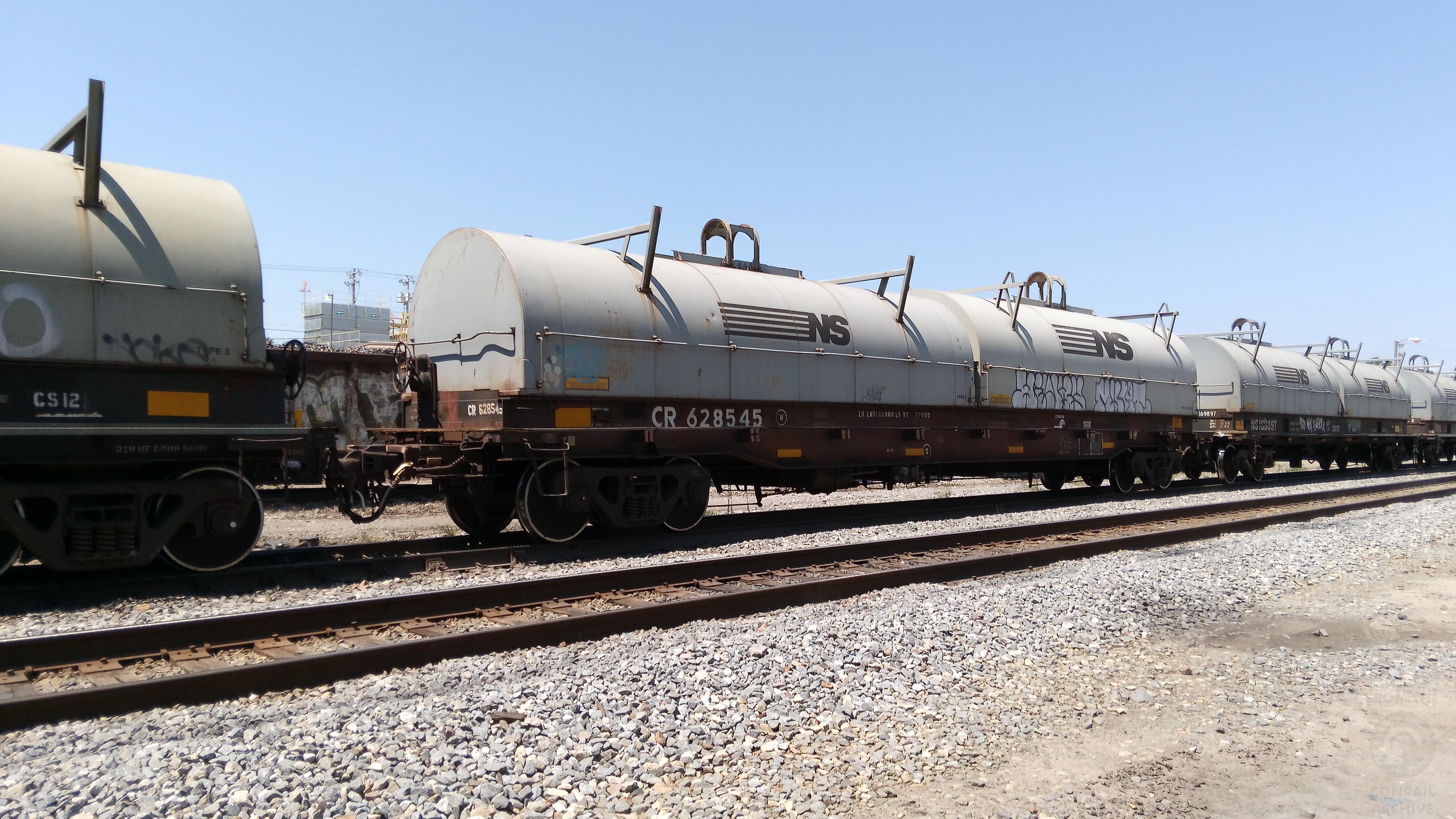 Another day I got to step off of the excursion, 3 UP trains came through that day. This was part of the first one, lots of old and cool stuff on the freight but this is of course the ConrailHistorical Society,so we'll turn our attention to a former Conrail G52B coil car at Van Buren's former MoPac-Frisco interchange. If only it didn't have those ugly NS hoods!
