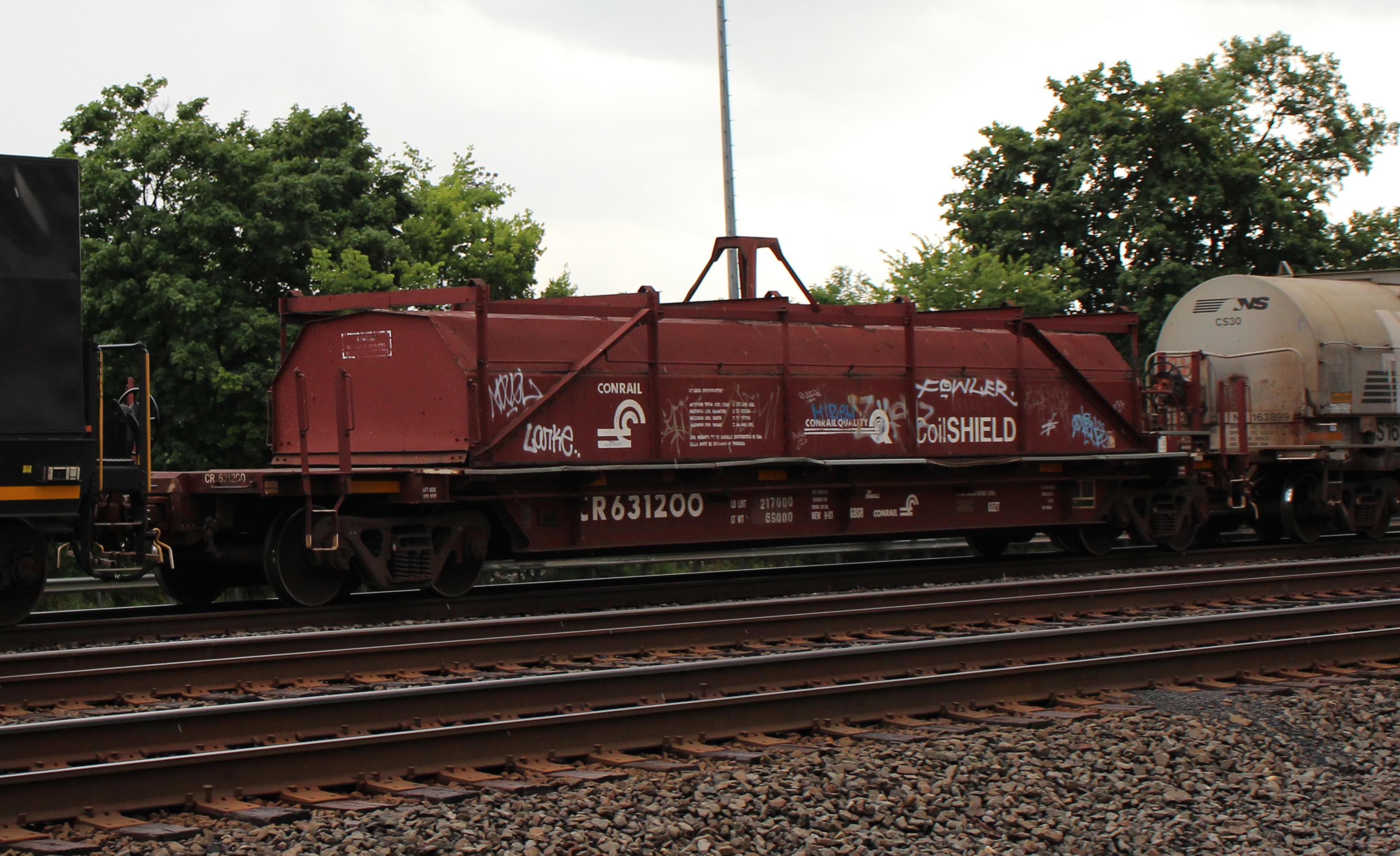 CR 631200 is seen in the consist of NS 39G at Leetsdale, PA on 6/28/25. Car was built 9-93 by Thrall.