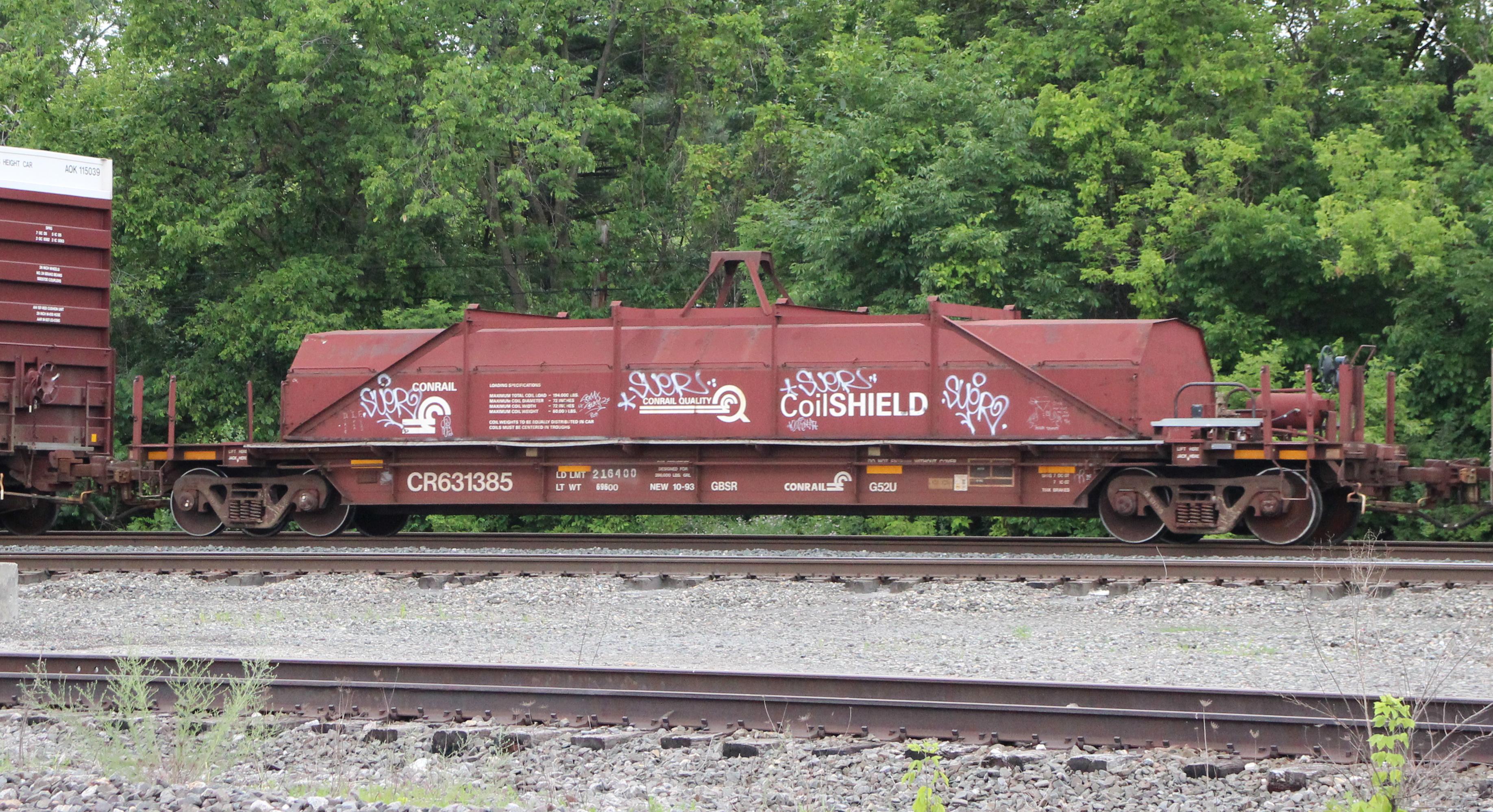 CR 631385 is seen in the consist of NS 10Q at Berea, OH on 6/23/23. Car was built 10-93 by HCS.