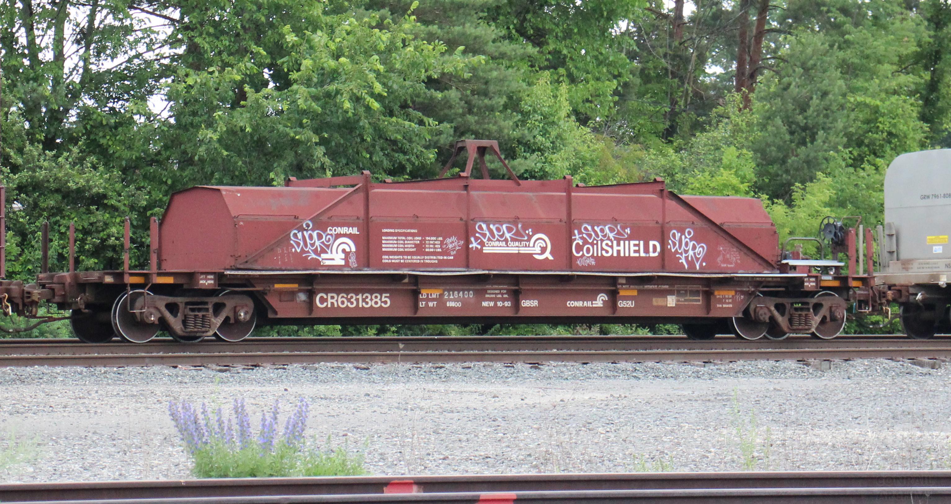 CR 631385 is seen in the consist of NS 10Q at Berea, OH on 6/23/23. Car was built 10-93 by HCS.