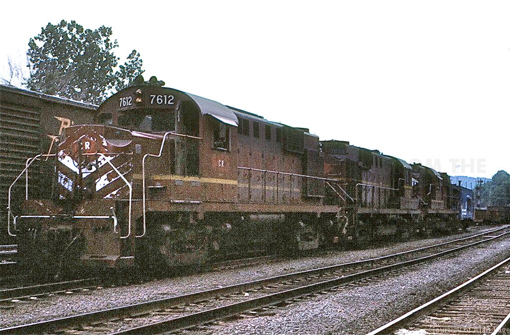 CR RS-11 7612 (ex-LV 403) leads high hood RS-11's 7642 and 7640 in a trio of former LV Alco's at Allentown yard in August, 1978.