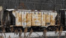 CR 80021 is seen in the consist of NS W6A at Newport, DE on 2/17/14. Car is ex LV 50826 and was built 5-56.