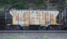 CR 80021 is seen in the consist of NS 35A as it rounds Horseshoe Curve in Altoona, PA on 6/14/18. Car is ex LV 50826 and was built 5-56.