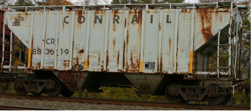 This little guy rolls along at Cove, PA showing some wear. According to sources, this may have been from the last order Conrail placed for freight cars from Thrall. Photo by Russ Swinnerton