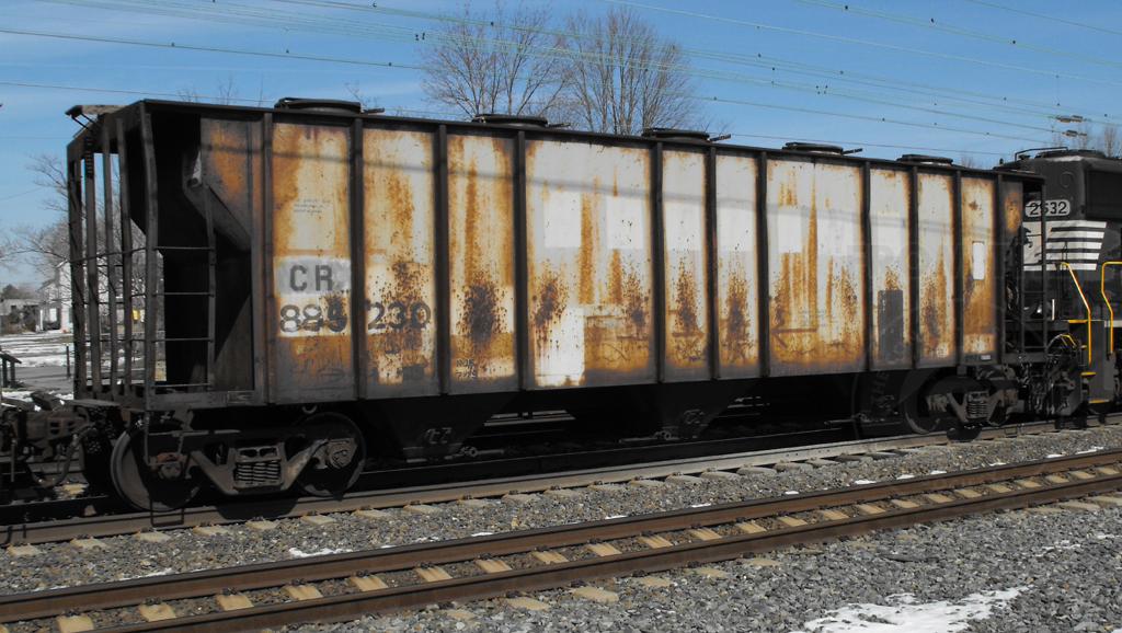 CR 885230 is seen on 36A at Newark DE on 3/5/09. Car is ex RDG 78802. Car is still in RDG gray, but has READING painted out.