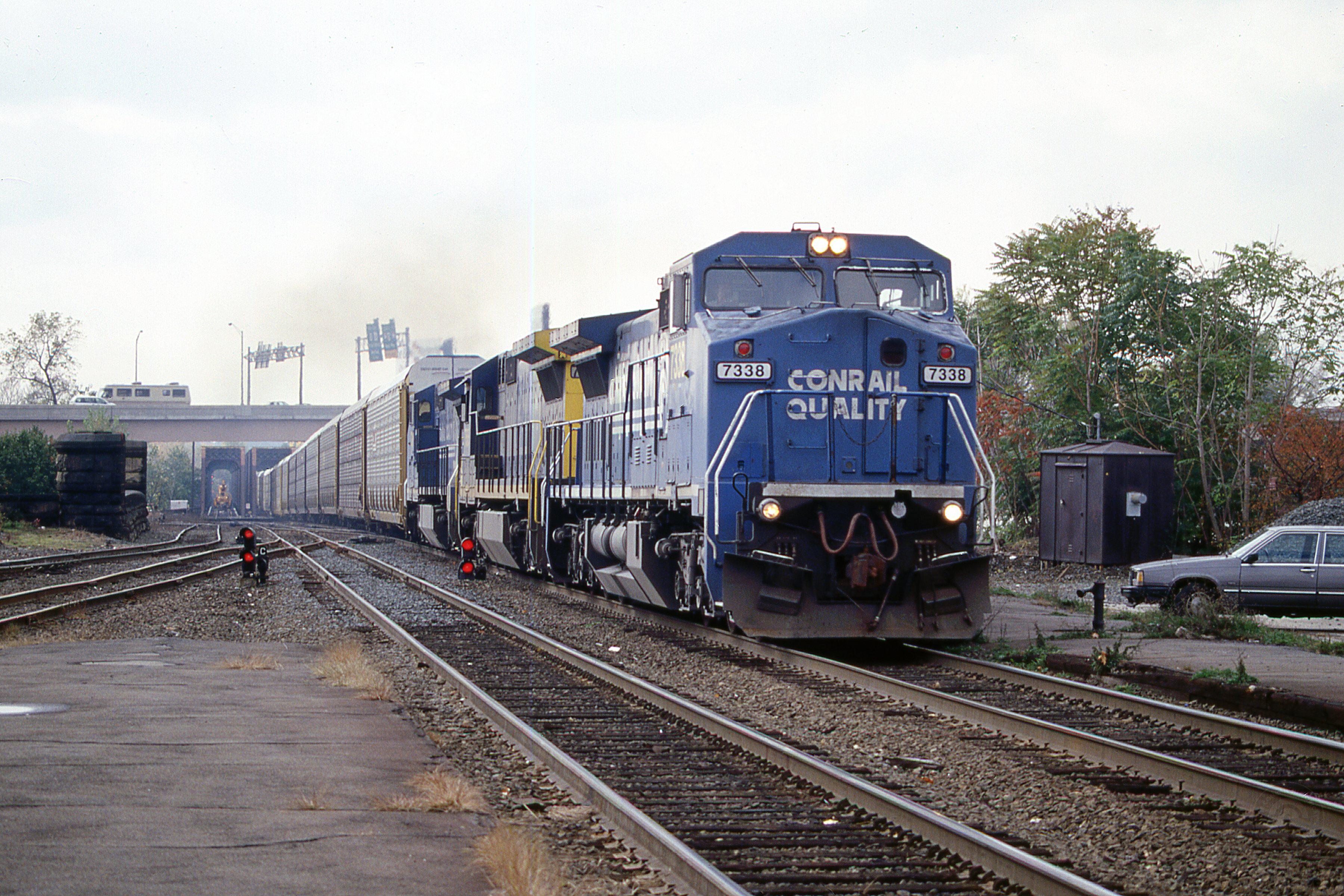 Previous Next CSX 7338 GE C40-8W Boston Line Springfield MA with unknown train Photo By Rich Bowes Location City Springfield MA Year 1999 Original Date 10/1/99 Collection CRHS Conrail Photo Archive Contributions