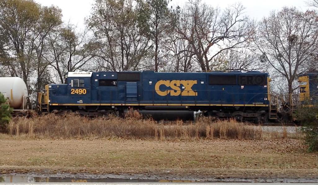 CSX 7824, 8407, and 2490 head WB through College Park, GA on December 20, 2016.