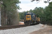 Previous Next CSXT SD50-2 2490 (CSX 8659/CR 6739) rolls a rail train southbound past S.E. Peachtree City signal at mi 827 on March 25, 2015. Photo By Alan Page Location Details S.E. Peachtree City CP 2316 mi 827 Equipment Type EMD SD50 Conrail Number 6739 Post Conrail Owner CSX Post Conrail Number CSX 2490 Year 2015 Original Date 3/25/15 Collection CRHS Conrail Photo Archive Contributions