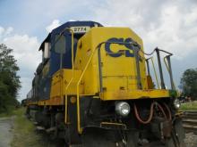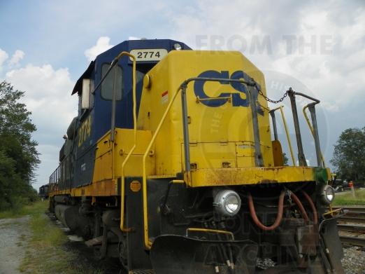 CSX 2774 (Conrail 8195) sits at the Apex, NC CSX road office (the old Seaboard baggage house) on 8/19/11. Unit retains a Conrail blue decal on the side identifying it is leased by the Consolidated Rail Corporation.